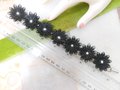 Vintage Black Lace Flower Bracelet Soft Plastic Celluloid Daisy Rhinestone Goth Mourning Mid Century Jewelry, VivianJoel.com